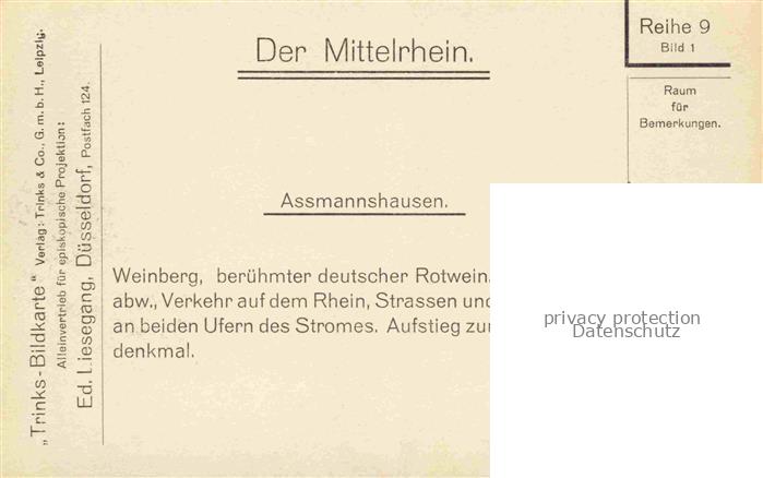 74035233 AssMANNSHAUSEN Rhein Panorama Serie Der Mittelrhein Reihe 9 Bild 1 postalisch nicht gelaufen Erhaltung siehe scans [FriedD77] KatCode: 11110006439013