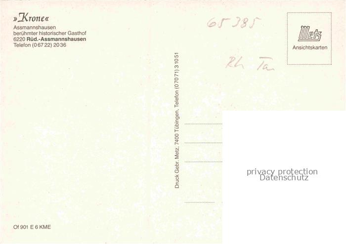 74157718 AssMANNSHAUSEN Rhein Restaurant Weinlaube Terrasse Gaeste Gasthof-Krone Weingartenueberdachung Rhein postalisch nicht gelaufen Erhaltung siehe scans [Karloger] KatCode: 11110006439013