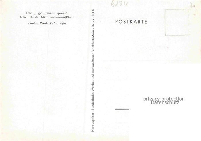 74138822 AssMANNSHAUSEN Rhein Rheinpartie mit Jugoslawien Express postalisch nicht gelaufen Erhaltung siehe scans [FriedD77] Frie Katcode 11110006439013