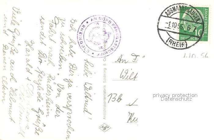73142965 alte Postkarte Assmannshausen Rheinpromenade Schloss Rheinstein Niederwalddenkmal postalisch gelaufen Erhaltung siehe scans [FriedD77] KatCode: 11110006439013