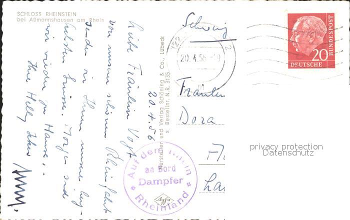 71901685 alte Postkarte Assmannshausen Schloss Rheinstein postalisch gelaufen Erhaltung siehe scans KatCode: 11110006439013