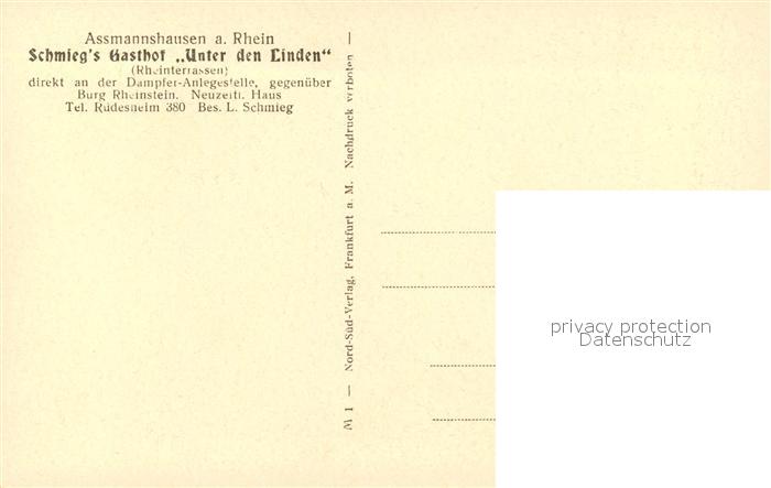 33317564 Assmannshausen Schmiegs Gasthof unter den Linden postalisch nicht gelaufen Erhaltung siehe scans [Darjalle] KatCode: 11110006439013