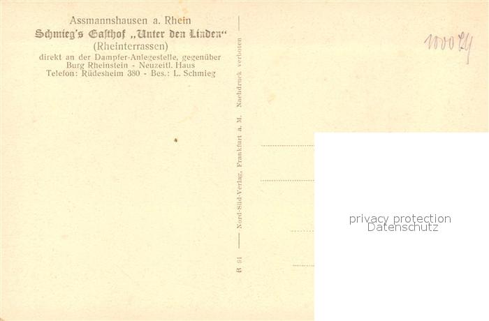 73248472 Assmannshausen Schmiegs Gasthof Unter den Linden postalisch nicht gelaufen Erhaltung siehe scans [WerneD78] KatCode: 11110006439013