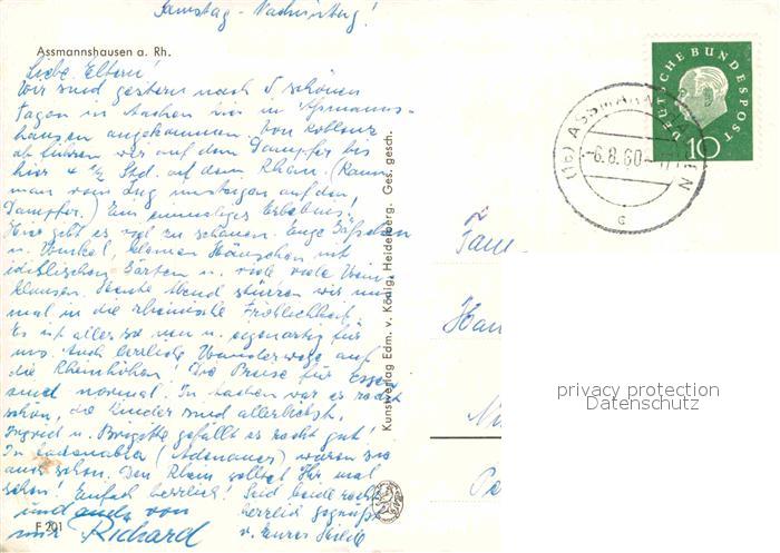72834842 alte Postkarte Assmannshausen postalisch gelaufen Erhaltung siehe scans [PaolaD17] KatCode: 11110006439013
