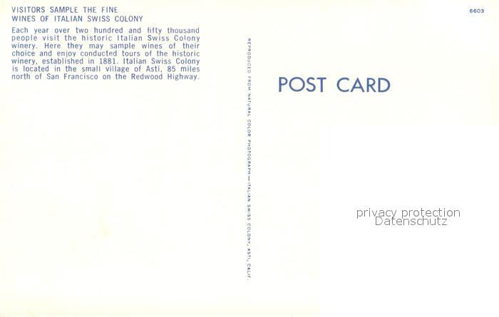 73716684 Asti California Historic Italian Swiss Colony winery postalisch nicht gelaufen Erhaltung siehe scans [FriedD77] KatCode: 14140050000000