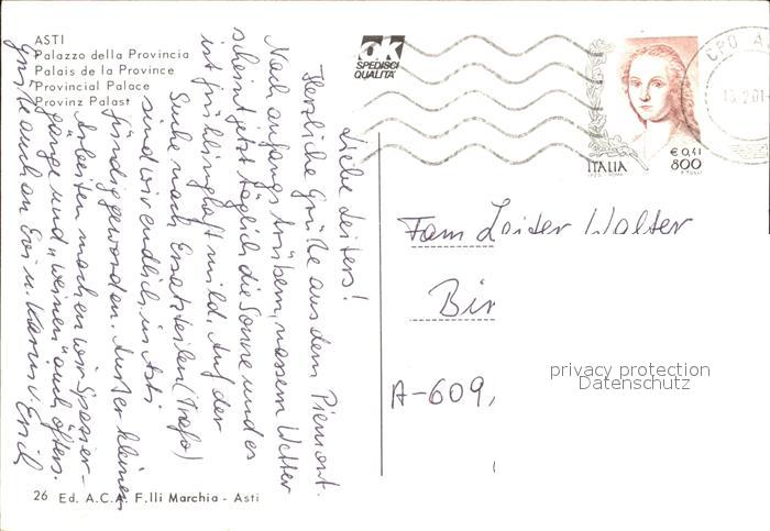 old postcard Asti Palazzo della Provincia Palast Denkmal Statue postalisch gelaufen Erhaltung siehe scans