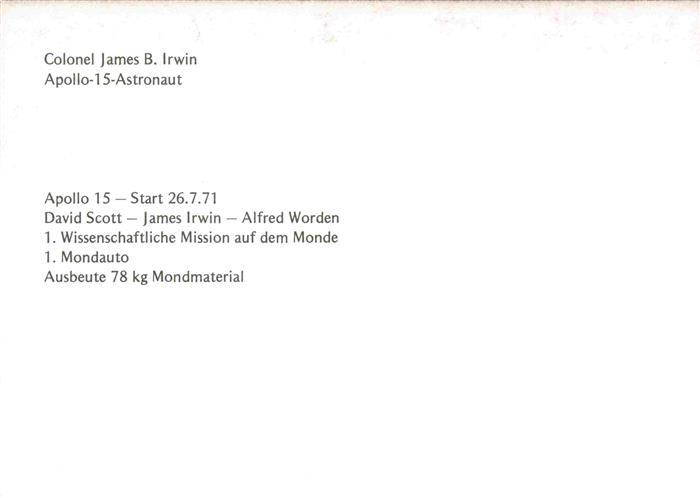 74027280 Astronaut Colonel James B. Irwin Apollo15 Monde postalisch nicht gelaufen Erhaltung siehe scans [SanaeD93] KatCode: 22060000008000