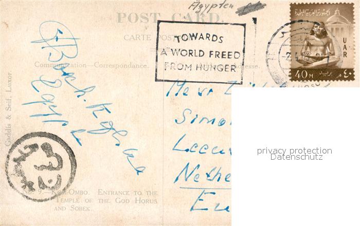 alte Postkarte Aswan Temepl Horus und Sobek postalisch gelaufen Erhaltung siehe scans [KathaD81]