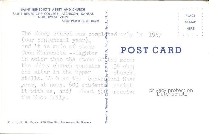 72132670 Atchison Saint Benedic`s Abbey and Church postalisch nicht gelaufen Erhaltung siehe scans KatCode: 14140180000000