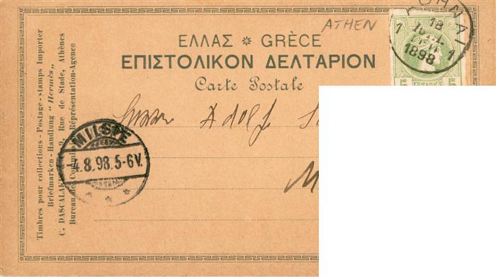 old postcard Athen Athenes Greece Monument de Lysicrate postalisch gelaufen Erhaltung siehe scans [FriedD77]