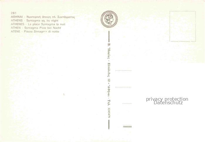 74023716 ATHEN Athenes Greece Syntagma Platz bei Nacht postalisch nicht gelaufen Erhaltung siehe scans [FriedD77] KatCode: 11190