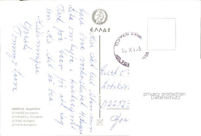 old postcard Athen Griechenland Acropolis postalisch gelaufen Erhaltung siehe scans
