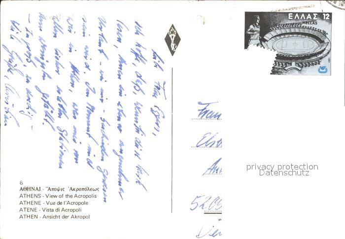 old postcard Athen Griechenland Akropol postalisch gelaufen Erhaltung siehe scans
