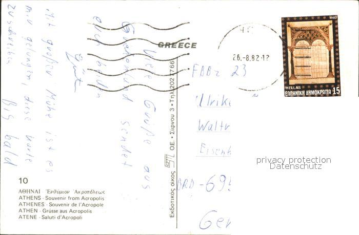 old postcard Athen Griechenland Akropolis postalisch gelaufen Erhaltung siehe scans