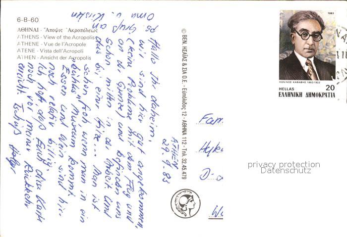 old postcard Athen Griechenland Akropolis postalisch gelaufen Erhaltung siehe scans