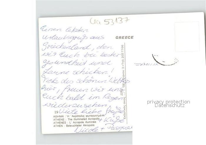 old postcard Athen Griechenland Akropolis bei Nacht postalisch gelaufen