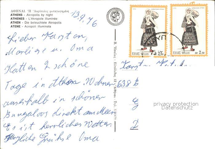 old postcard Athen Griechenland Akropolis bei Nacht postalisch gelaufen Erhaltung siehe scans
