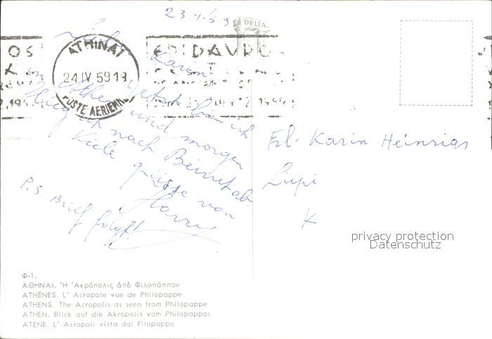 old postcard Athen Griechenland Akropolis Philopappe postalisch gelaufen Erhaltung siehe scans