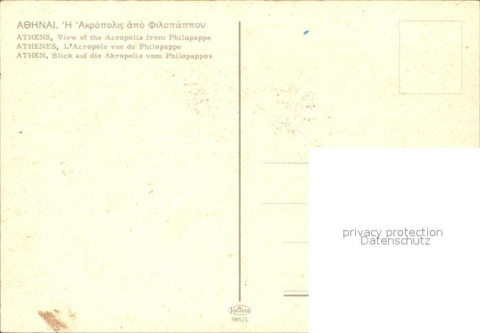 Athen Griechenland Akropolis Philopappos postalisch nicht gelaufen