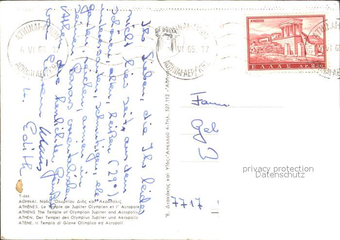 old postcard Athen Griechenland Akropolis Tempel Olympius Jupiter postalisch gelaufen Erhaltung siehe scans