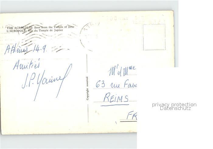 old postcard Athen Griechenland Akropolis Temple of Zeus postalisch gelaufen Erhaltung siehe scans