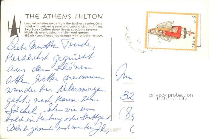 old postcard Athen Griechenland Athens Hilton postalisch gelaufen Erhaltung siehe scans