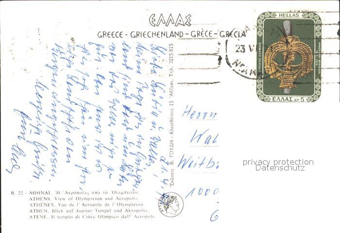 old postcard Athen Griechenland Blick Jupiter Tempel Akropolis postalisch gelaufen