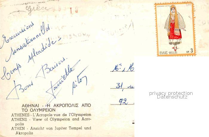 old postcard Athen Griechenland Jupiter Tempel Akropolis postalisch gelaufen Erhaltung siehe scans [KathaD81]