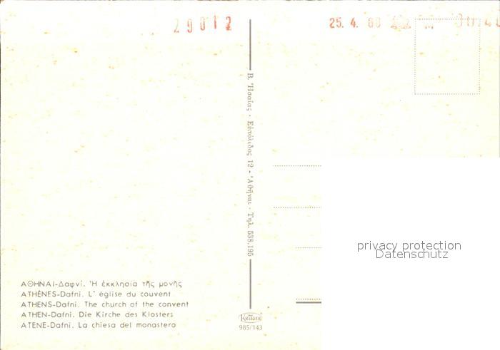 Athen Griechenland Kirche des Klosters postalisch nicht gelaufen Erhaltung siehe scans [AndreD76]