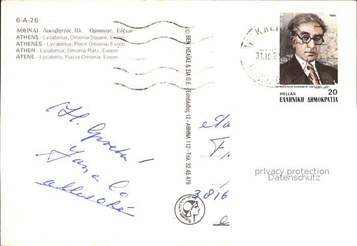 old postcard Athen Griechenland Lycabetus Omonnia Platz Ewson postalisch gelaufen Erhaltung siehe scans