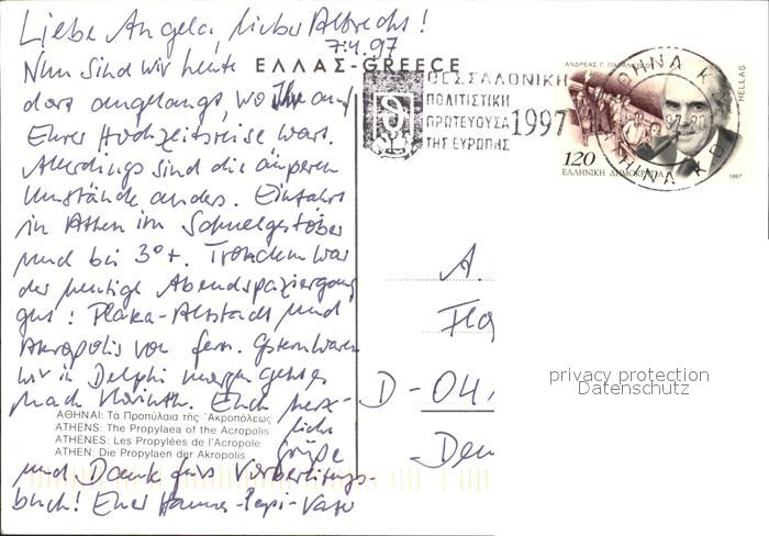 old postcard Athen Griechenland Propylaen Akropolis postalisch gelaufen Erhaltung siehe scans