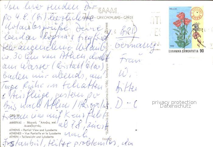 old postcard Athen Griechenland Teilansicht Lykabette postalisch gelaufen Erhaltung siehe scans