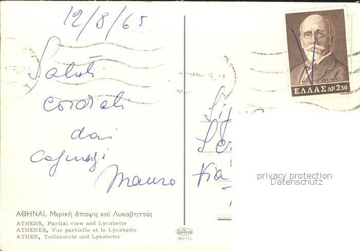 old postcard Athen Griechenland Teilansicht Lykabette postalisch gelaufen Erhaltung siehe scans