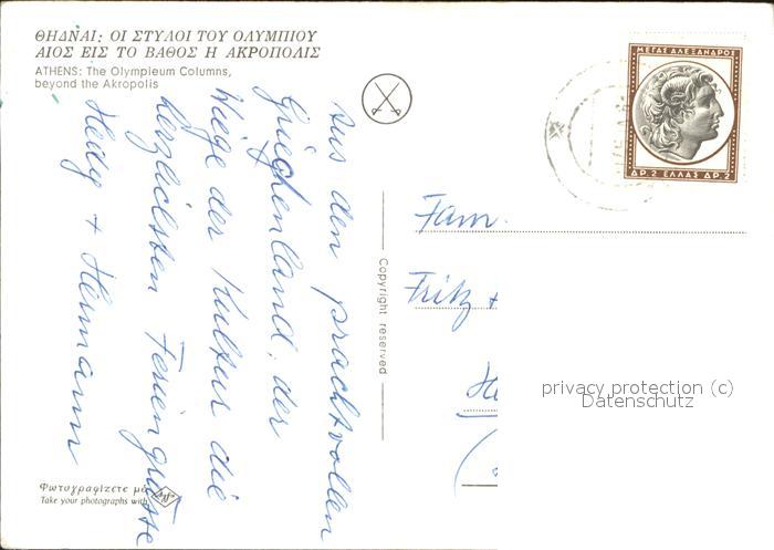 old postcard Athen Griechenland The Olympleum Columns beyond the Akropolis postalisch gelaufen Erhaltung siehe scans
