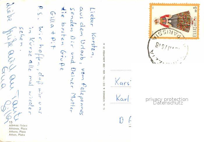 old postcard Athen Griechenland Typischer Platz postalisch gelaufen Erhaltung siehe scans [AndreD76]