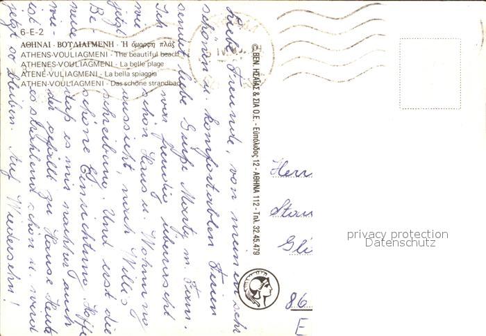 old postcard Athen Griechenland Vouliagment Strandbad postalisch gelaufen Erhaltung siehe scans