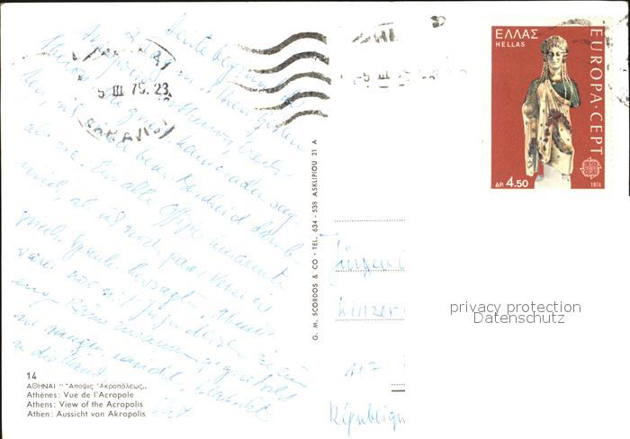 old postcard Athenes Athen Akropolis postalisch gelaufen Erhaltung siehe scans [LiesaD40 kt122box]