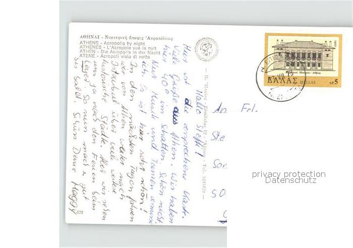 old postcard Athenes Athen Akropolis bei Nacht Tempel Antike postalisch gelaufen Erhaltung siehe scans