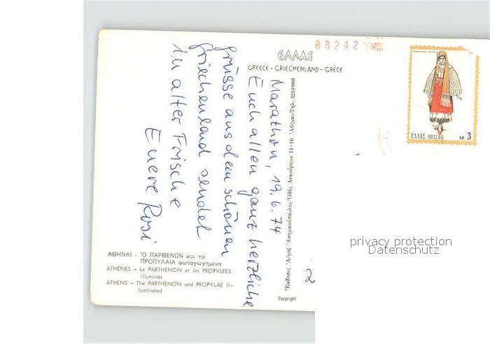 old postcard Athenes Athen beleuchtete Akropolis Parthenon und Propylae Tempel Antike postalisch gelaufen Erhaltung siehe scans