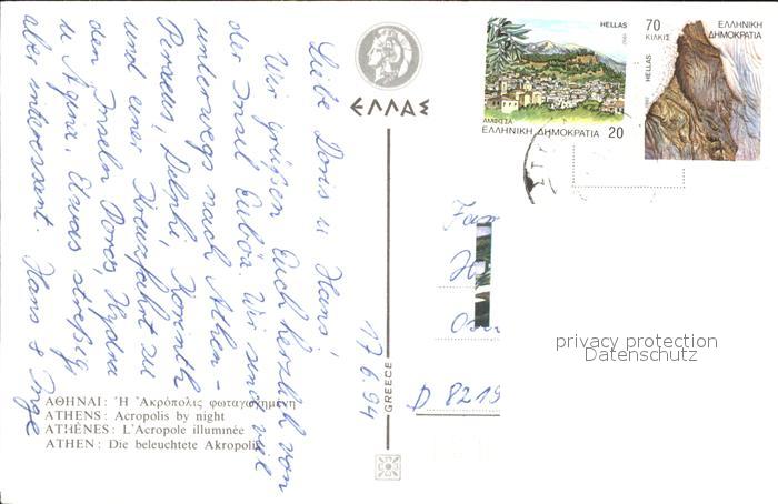 old postcard Athenes Athen Beleuchtete Akropolis Tempel Ruine Antike postalisch gelaufen Erhaltung siehe scans