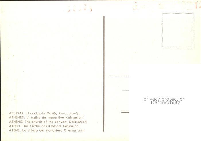 Athenes Athen Kirche Kloster Kessariani postalisch nicht gelaufen Erhaltung siehe scans
