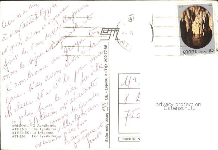 old postcard Athenes Athen Lykabettus Stadtberg postalisch gelaufen Erhaltung siehe scans