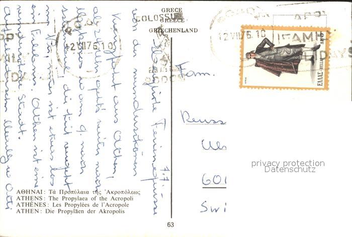 old postcard Athenes Athen Propylaeen der Akropolis postalisch gelaufen Erhaltung siehe scans