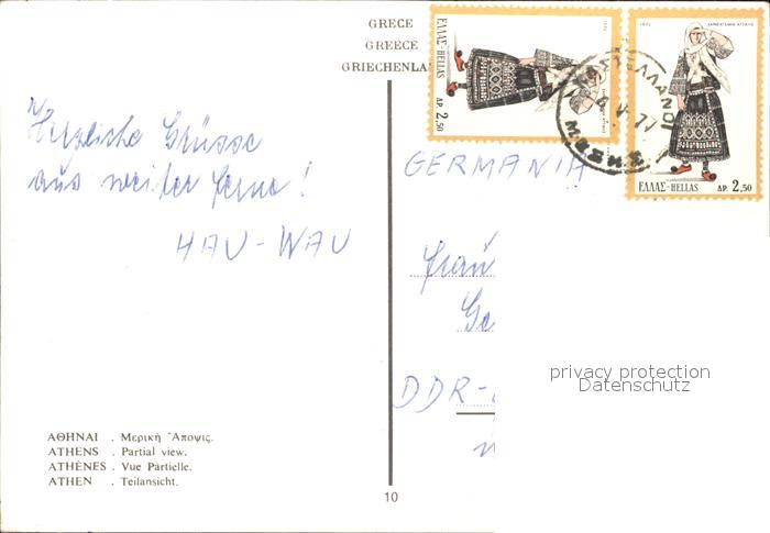old postcard Athenes Athen Teilansicht mit Blick zur Akropolis postalisch gelaufen Erhaltung siehe scans