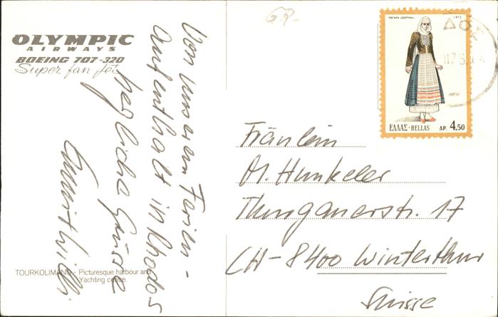 old postcard Athenes Athen Tourkolimano Pictoresque harbour and Yachting centre postalisch gelaufen gute Erhaltung