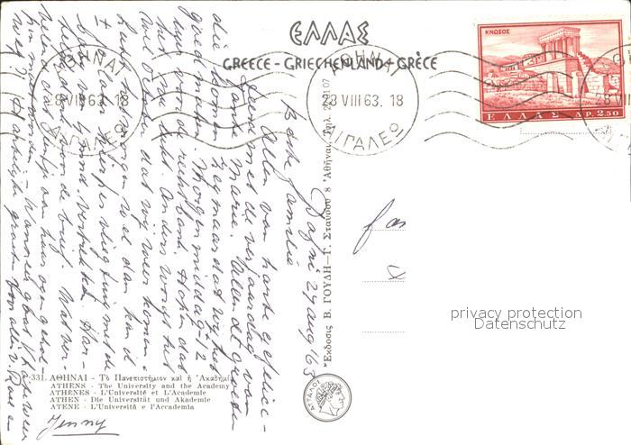 old postcard Athenes Athen Universitaet postalisch gelaufen Erhaltung siehe scans