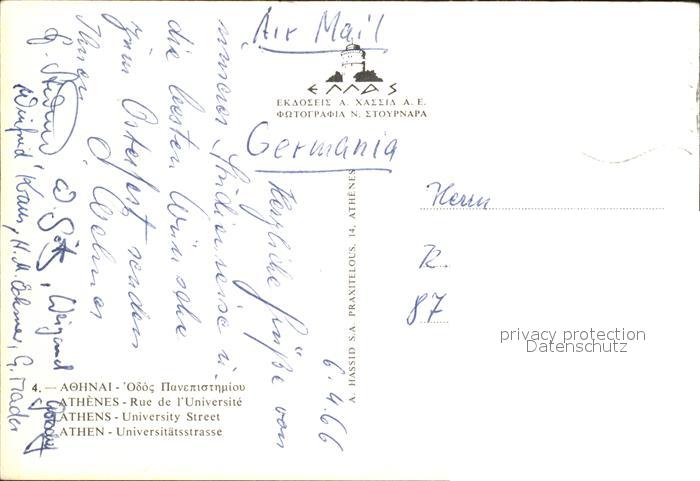 old postcard Athenes Athen Universitaetsstrasse postalisch gelaufen Erhaltung siehe scans