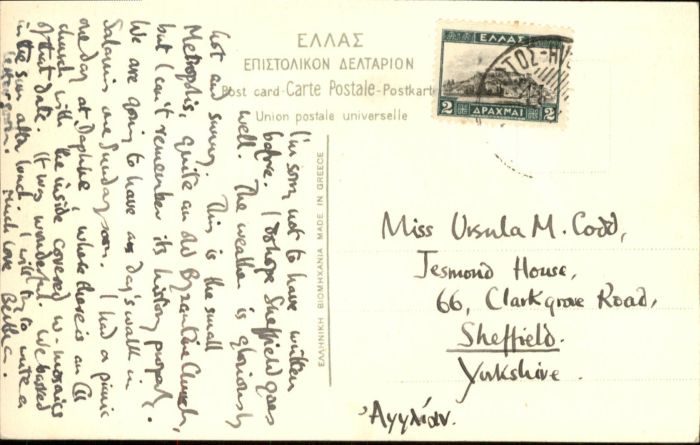 old postcard Athens Athen Athens Metropolis St. Eleutherios postalisch gelaufen