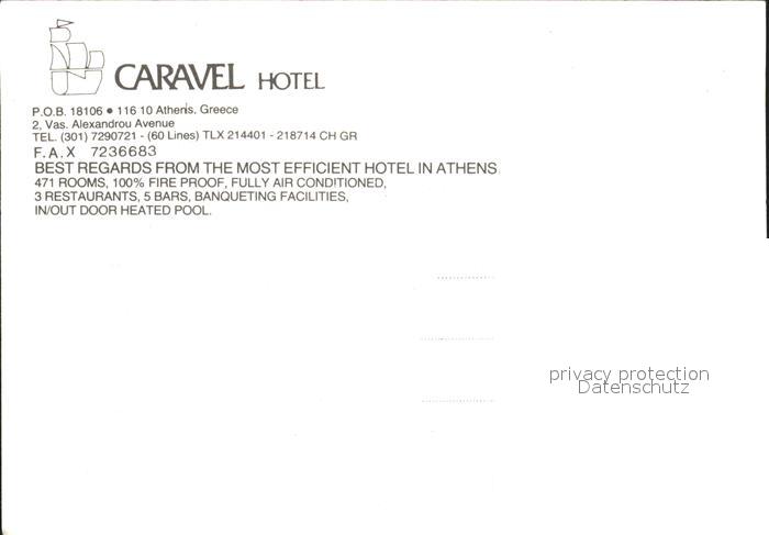 Athens Athen Caravel Hotel postalisch nicht gelaufen Erhaltung siehe scans