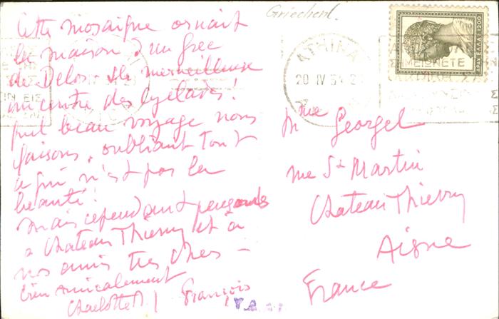 old postcard Athens Athen Delos Mosaique de Dionysos postalisch gelaufen gute Erhaltung
